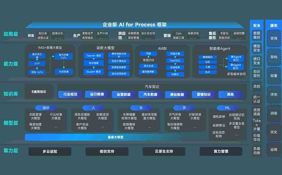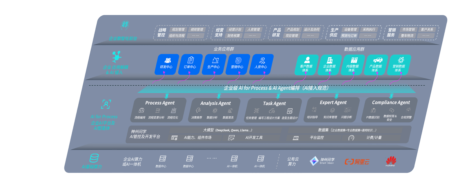 端到端的一站式AI工作空间深度融合了从企业战略规划到日常经营的全流程业务板块,,,定向解决车企内部领域多、、、部门多、、、链条长、、场景碎片化等难题,,支持车企快速构建以AI为核心的生产力写作体系,,,实现任务执行与AI能力的无缝集成与交互
