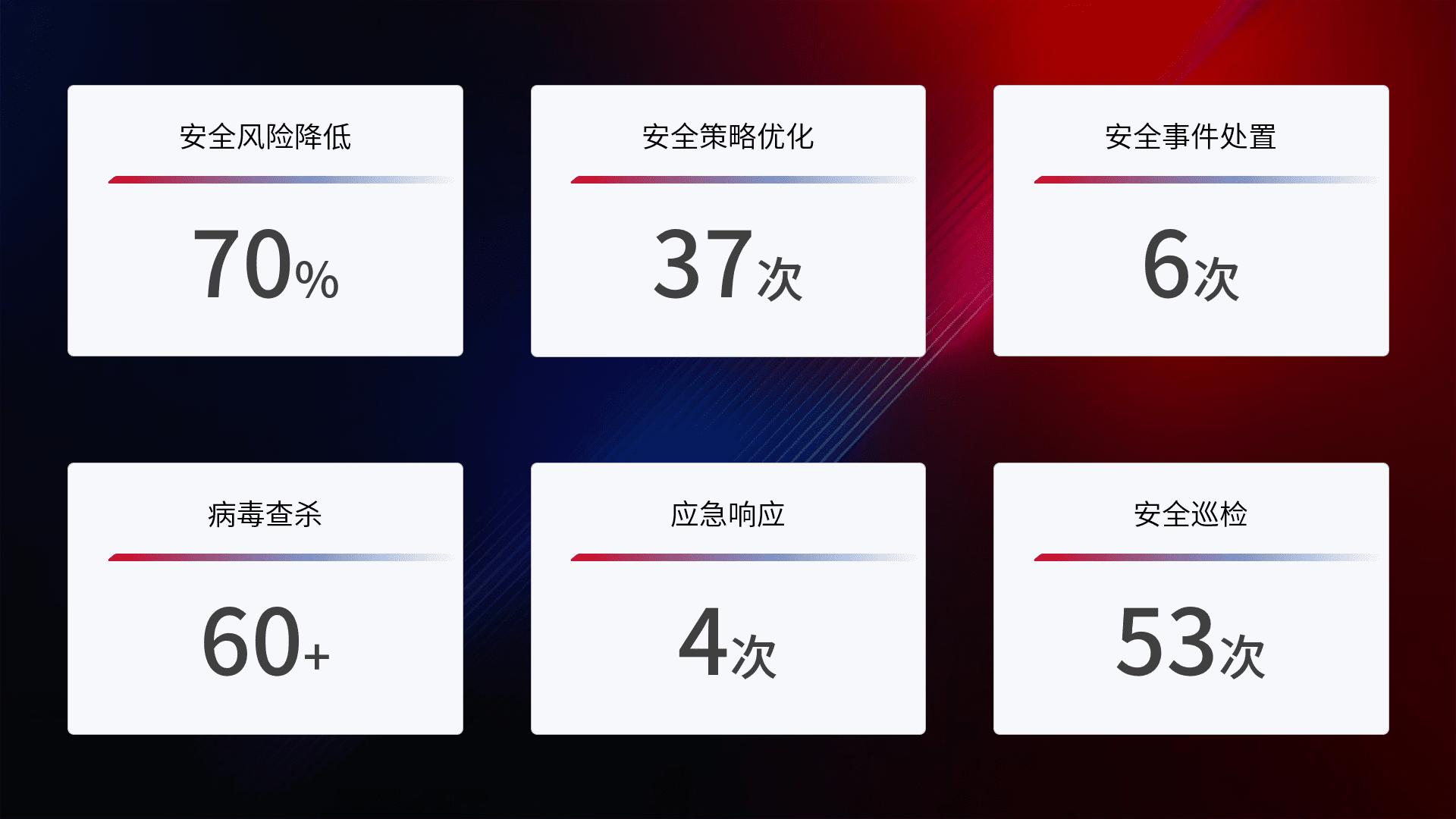 提供全面的安全事件报告体系,,包括处置报告、、、周报、、、、季度和年度总结,,结合持续监控,,帮助客户深入了解网络安全状况。。。